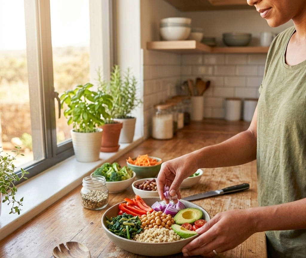 Portion size still matters even with healthy foods, since nuts, seeds, and quinoa are high in calories despite being nutritious. And eating too quickly prevents your fullness signals from registering. Your brain takes 15 to 20 minutes to receive those signals. Slowing down genuinely helps.